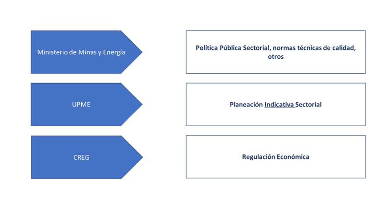 La institucionalidad colombiana, a partir de la expedición de la Constitución Política, y en materia de energía y gas, a partir de la expedición de las Leyes 142 y 143 de 1994, fue clara en establecer las competencias entre las diferentes instituciones, precisamente para que el Estado pudiera hacer lo que mejor hace, y dejar al sector privado y público de carácter empresarial, hacer las inversiones correspondientes.