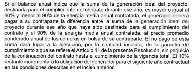 De acuerdo con lo anterior entonces, si el Vendedor en el Balance anual no puede cumplir con el 90% de la energía media anual contratada, le tiene que pagar al comprador la energía remanente “al precio promedio ponderado anual de las compras en bolsa de su contraparte”.